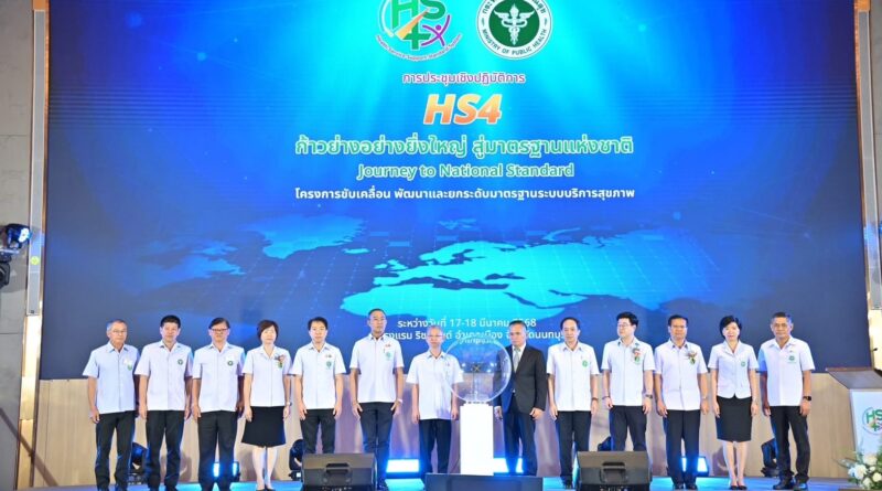 ปลัดกระทรวงสาธารณสุข เปิดงานขับเคลื่อนมาตรฐานระบบบริการสุขภาพ “HS4 ก้าวย่างอย่างยิ่งใหญ่สู่มาตรฐานแห่งชาติ” มุ่งยกระดับสถานพยาบาลภาครัฐ สู่สถานพยาบาลต้นแบบ เพิ่มศักยภาพแข่งขันในระดับสากล ปัจจุบันมีสถานพยาบาลภาครัฐทุกสังกัดได้รับมาตรฐาน HS4 แล้ว 1,074 แห่ง หรือร้อยละ 97.6 ตั้งเป้าให้สถานพยาบาลรัฐผ่านเกณฑ์มาตรฐานครบทุกแห่ง เพื่อประชาชนเข้าถึงบริการสุขภาพที่มีคุณภาพและปลอดภัย ส่งเสริมประเทศไทยให้เป็นศูนย์กลางบริการสุขภาพโลก