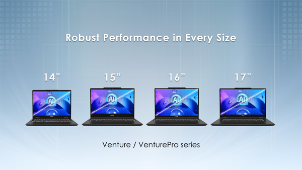 Venture และ VenturePro Series ถูกออกแบบมาเพื่อตอบโจทย์ผู้ใช้งานหลากหลายกลุ่ม ไม่ว่าจะเป็น นักเรียน นักศึกษา ที่ต้องใช้ซอฟต์แวร์การเรียนรู้และค้นคว้าแหล่งข้อมูลจำนวนมาก ผู้ประกอบการ ที่ต้องบริหารหลายโปรเจกต์ระหว่างการเดินทางหรือทำงานนอกสถานที่ หรือครีเอเตอร์ที่ทำงานกับเวิร์กโฟลว์ซับซ้อนอีกทั้งยังมีขนาดหน้าจอให้เลือกตั้งแต่ 14 นิ้ว ไปจนถึง 17 นิ้ว แล็ปท็อปรุ่นนี้จึงผสานความสะดวกในการพกพาเข้ากับประสิทธิภาพในการทำงานได้อย่างลงตัว พร้อมปรับตัวเข้ากับทุกพื้นที่การทำงานได้อย่างยืดหยุ่น ตอบโจทย์ทุกสถานการณ์ได้อย่างมีประสิทธิภาพ