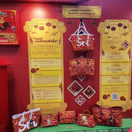 รศ.ดร.ศิวฤทธิ์ กล่าวว่า 3 นวัตกรรมจากความเชื่อสู่การรักษ์โลก ดังกล่าวประกอบด้วย 1) “กระเป๋าหางประทัด” แปรรูปหางประทัด 999 ชิ้นต่อกระเป๋า 1 ใบ ผสานเทคนิคจักสานดั้งเดิมเป็นแฟชั่นร่วมสมัย 2)”อิฐต่อ ก่อบุญ” ซึ่งนำเศษประทัดและไก่ปูนปั้นมาผลิตอิฐก่อสร้างคุณภาพสูง และ 3) “Art Toy ไก่ศรัทธา”แปรรูปเศษไก่ปูนปั้นเป็นตัวการ์ตูน “น้องร่ำรวย น้องร่ายรำ และน้องร่าเริง” ที่ผสมผสานศิลปะโนราห์และวัฒนธรรมไทย-จีน