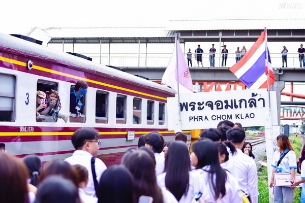 กิจกรรมในช่วงเช้าเริ่มต้นอย่างคึกคักด้วยการรับน้องรถไฟ ณ สถานีหัวลำโพง มีนักศึกษาใหม่กว่า 700 คนร่วมเดินทางโดยขบวนรถไฟพิเศษไปยังสถานีพระจอมเกล้า พร้อมกิจกรรมสันทนาการตลอดเส้นทาง เพื่อสร้างสายสัมพันธ์ระหว่างผู้บริหาร คณาจารย์ รุ่นพี่และรุ่นน้องในบรรยากาศที่อบอุ่น สนุกสนาน และน่าจดจำ เมื่อวันศุกร์ที่ 27 มิถุนายน 2568 โดยขบวนรถไฟออกจากสถานีเวลา 08.00 น. ถึงสถานีพระจอมเกล้าเวลา 09.00 น. โดยมีผู้บริหาร คณาจารย์ รุ่นพี่ไปยืนรอต้อนรับเข้าสู่สถาบันอย่างอบอุ่น