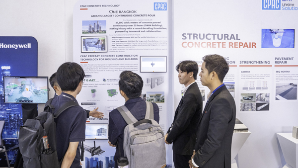 สำหรับภายในงานยังมีการจัดบูธนิทรรศการร่วมนำเสนอนวัตกรรมคอนกรีตกำลังอัดสูง ซีแพค และเทคโนโลยี สำหรับงานซ่อม เสริมกำลัง จาก CPAC SB&M Lifetime Solution ผ่านความร่วมมือกับพันธมิตรญี่ปุ่น Shobond & Mitsui Infrastructure Maintenance Corporation หรือ SB&M ผู้เชี่ยวชาญด้านการซ่อมแซมเชิงลึกที่มีประสบการณ์กว่า 60 ปี ทั้งด้านเทคโนโลยี วัสดุศาสตร์ และการพัฒนานวัตกรรมซ่อมแซมโดยเฉพาะสำหรับสภาพแวดล้อมในภูมิภาคอาเซียนแสดงถึงศักยภาพผู้นำด้านเทคโนโลยีคอนกรีตและความพร้อมในการเป็นผู้ให้บริการโซลูชันด้านการซ่อมแซมและบำรุงรักษาโครงสร้างแบบครบวงจรที่รองรับปัญหาด้านภัยพิบัติ
