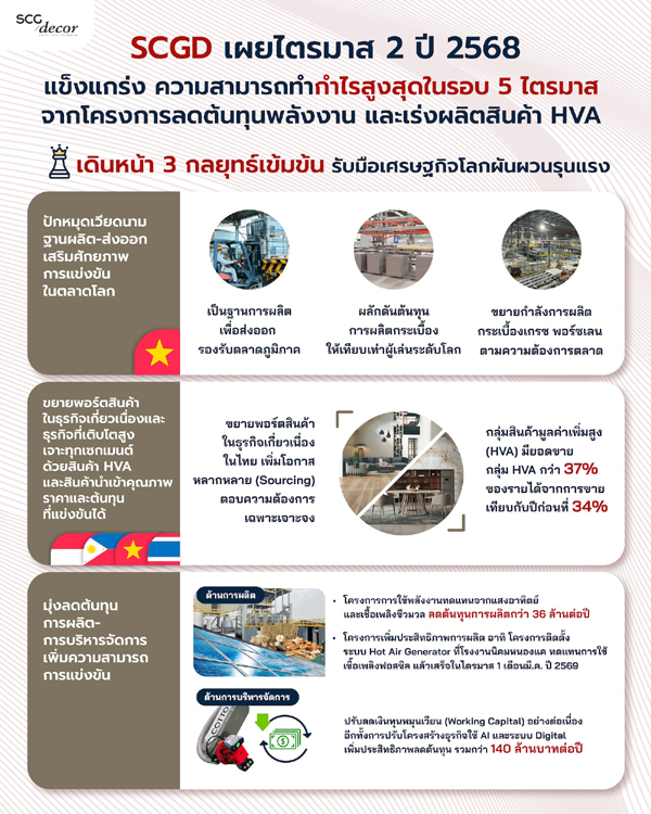 SCGD เผยไตรมาส 2 ปี 2568 แข็งแกร่ง ความสามารถทำกำไรสูงสุดในรอบ 5 ไตรมาส ยกระดับกลยุทธ์เข้มข้น ปักหมุดเวียดนามฐานผลิตหลัก-หนุนส่งออก