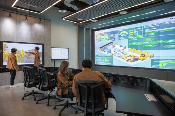 • การใช้หุ่นยนต์และ AI เช่น เอสซีจี ซีเมนต์แอนด์กรีนโซลูชันส์ ใช้หุ่นยนต์บรรจุปูนซีเมนต์และลำเลียงไปยังคลังสินค้า และใช้ระบบจัดเก็บและเบิกจ่ายสินค้าอัตโนมัติ (AS/RS Warehouse System) ช่วยจัดสินค้าไปยังรถขนส่ง รวมทั้งร่วมกับพาร์ทเนอร์ พัฒนารถบรรทุกไฟฟ้าขนส่งในเหมือง (EV Mining Truck) แบบไร้คนขับเป็นรายแรกในไทย เอสซีจี สมาร์ทลีฟวิง ใช้ระบบอัตโนมัติผลิตกระเบื้องและครอบหลังคา และแผ่นฝ้าผนังสมาร์ทบอร์ด ทำให้ได้สินค้าคุณภาพมาตรฐาน ลดค่าใช้จ่ายจากของเสียในกระบวนการผลิต และลดต้นทุนบริหารจัดการ นอกจากนี้ ได้เริ่มใช้ AI ช่วยลดขั้นตอนออกแบบและพัฒนาสินค้าใหม่ เอสซีจี เดคคอร์ ใช้ระบบอัตโนมัติเคลื่อนย้ายชิ้นงานกระเบื้องและสุขภัณฑ์ในกระบวนการผลิตและบรรจุ รวมทั้งใช้ AI ช่วยออกแบบสินค้า จำลองกระบวนการก่อนผลิตจริง ตรวจสอบคุณภาพ รวมถึงบริหารคลังสินค้า และ เอสซีจีซี ใช้หุ่นยนต์บริหารจัดการโรงงาน อาทิ โรงงานนวพลาสติกอุตสาหกรรมที่ผลิตท่อและข้อต่อ PVC รวมถึงผลิตภัณฑ์สำเร็จรูปจาก PVC มีสัดส่วนการใช้หุ่นยนต์ (Robot Density) เทียบเท่าระดับ Best in Class ของโลก และใช้เทคโนโลยีดิจิทัลและ AI เพื่อลดระยะเวลาในการพัฒนาพอลิเมอร์