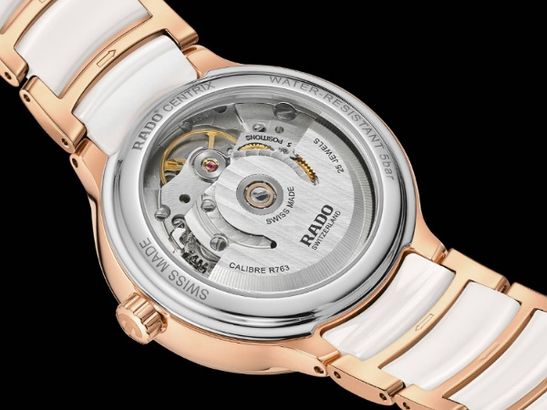 หัวใจของเรือนเวลาคือกลไกอัตโนมัติ Rado calibre R763 ที่ผ่านการปรับเทียบอย่างพิถีพิถันใน 5 ตำแหน่ง พร้อมสปริงใย Nivachron™ ต้านสนามแม่เหล็ก และมอบพลังงานสำรองได้ถึง 80 ชั่วโมง กลไกประณีตนี้สามารถชื่นชมได้ผ่านฝาหลังคริสตัลแซฟไฟร์โปร่งใส