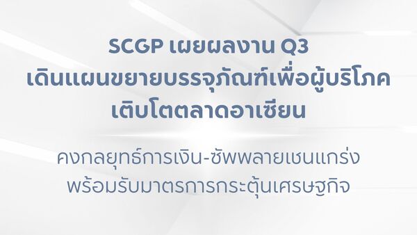 SCGP เผยผลงานไตรมาส 3 เดินแผนขยายบรรจุภัณฑ์เพื่อผู้บริโภค เติบโตตลาดอาเซียนคงกลยุทธ์การเงิน-ซัพพลายเชนแกร่ง พร้อมรับมาตรการกระตุ้นเศรษฐกิจ