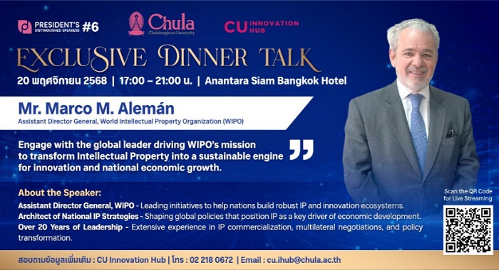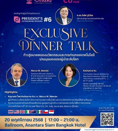จุฬาฯ ชวนเปิดมุมมองผู้นำระดับโลก ด้านนวัตกรรมและทรัพย์สินทางปัญญาในงาน “President’s Distinguished Speaker #6”