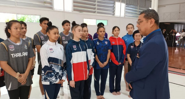 “ยิมนาสติกส์” โชว์ความเข้มแข็งผสมผสานสนุกสนาน ให้คณะของ ดร.ณัฏฐ์ ธีรณัฐสุภานนท์ ได้ชมพร้อมย้ำชัดเป้าหมาย 5 เหรียญทอง