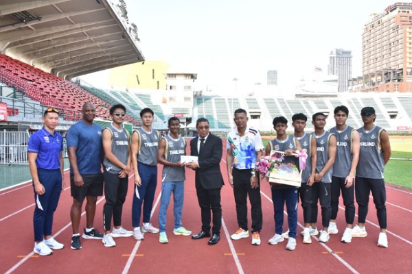 จากนั้น ดร.ณัฏฐ์ ธีรณัฐสุภานนท์ ได้มอบกระเช้าผลไม้ และเงินสนับสนุนการฝึกซ้อมจำนวน 20,000 บาท พร้อมให้โอวาทแก่นักกีฬากรีฑาทีมชาติไทย