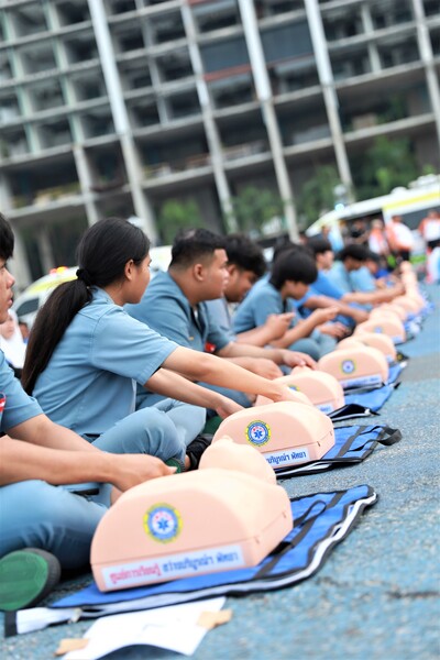 วันที่ 12 ธันวาคม 2568 สถาบันการแพทย์ฉุกเฉินแห่งชาติ (สพฉ.) ร่วมกับเมืองพัทยา โรงพยาบาลกรุงเทพพัทยา และมูลนิธิสว่างมูลนิธิสว่างบริบูรณ์ พัทยา จัดกิจกรรม “CPR on the Beach” อบรมการแจ้งเหตุฉุกเฉิน 1669 การฟื้นคืนชีพขั้นพื้นฐานด้วยการ CPR และการใช้เครื่อง AED ให้แก่ผู้ประกอบการร่มเตียง นวดไทย เรือประมง และประชาชนในพื้นที่ จำนวน 2,000 คน ณ ท่าเรือแหลมบาลีฮาย พัทยา พร้อมยกระดับผู้เข้าอบรมสู่การเป็นอาสาฉุกเฉินชุมชน (อฉช.) หรือ “หมอคนแรก” ที่สามารถให้การช่วยเหลือผู้ป่วยฉุกเฉินได้อย่างทันท่วงที สร้างความมั่นใจให้แก่นักท่องเที่ยว และสร้างมูลค่าเพิ่มทางเศรษฐกิจให้แก่อุตสาหกรรมการท่องเที่ยวของประเทศอย่างยั่งยืนสืบไป