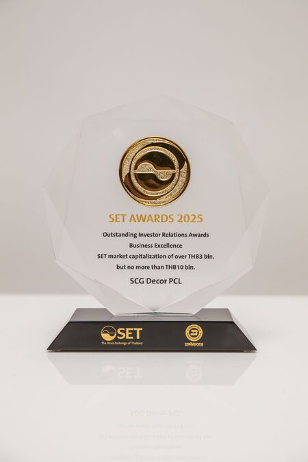 บริษัท เอสซีจี เดคคอร์ จำกัด (มหาชน) หรือ SCGD คว้ารางวัล Outstanding Investor Relations Awards จากเวที SET Awards 2025 ซึ่งจัดโดยตลาดหลักทรัพย์แห่งประเทศไทยร่วมกับวารสารการเงินธนาคาร สะท้อนถึงความมุ่งมั่นของบริษัทในการสร้างความเชื่อมั่นให้กับนักลงทุนผ่านการให้ข้อมูลและการดำเนินกิจกรรมนักลงทุนสัมพันธ์ครบถ้วน โปร่งใส รางวัลนี้ ยังสะท้อนถึงบทบาทของผู้บริหารในการให้ความสำคัญและสนับสนุนงานด้านนักลงทุนสัมพันธ์อย่างต่อเนื่อง ส่งผลให้ SCGD สามารถขับเคลื่อนงานด้านการสื่อสารและสนับสนุนงานด้านนักลงทุนสัมพันธ์ได้อย่างมีประสิทธิภาพ
