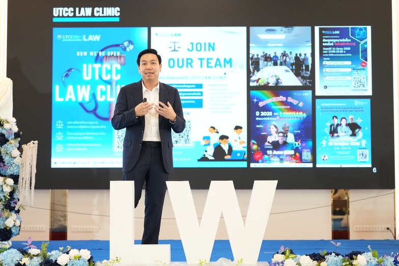 คณบดียังได้กล่าวถึงพันธกิจหลักของคณะฯ ว่า นอกเหนือจากการผลิตบัณฑิตคุณภาพแล้ว คณะฯ ยังให้ความสำคัญกับการบริการวิชาการในด้านการให้คำปรึกษาและการอบรมให้ความรู้ด้านกฎหมายแก่สังคมโดยการจัดตั้ง UTCC Law Clinic (คลินิกให้คำปรึกษาปัญหากฎหมายสำหรับประชาชน) รวมถึงการสร้างและพัฒนาความร่วมมือระหว่างภาคีเครือข่ายทั้งภาครัฐและเอกชน เพื่อร่วมกันขับเคลื่อนวงการกฎหมายไทยให้ก้าวหน้าทัดเทียมนานาชาติ