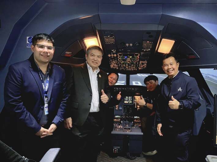 โอกาสเดียวกันนี้ ระหว่างวันที่ 4 – 7 กุมภาพันธ์ พ.ศ.2569 ผศ.ดร.ปิติทัศน์ อิสริยะภิญโญ รองคณบดี พร้อมคณะ ได้นำนักศึกษาชั้นปีที่ 1 – 2 สาขาวิศวกรรมการบินและนักบินพาณิชย์ และสาขาวิศวกรรมการบินและอวกาศ เข้าศึกษาดูงานในงาน Singapore Airshow 2026 ณ Changi Exhibition Centre ประเทศสิงคโปร์ รวมถึงเยี่ยมชม Embry-Riddle Aeronautical University Asia (ERAU), Temasek Polytechnic และTemasek Laboratories, National University of Singapore (NUS) พร้อมหารือแนวทางจัด Summer Camp และ Overseas Training/Internship เพื่อยกระดับศักยภาพนักศึกษาสู่มาตรฐานสากล
