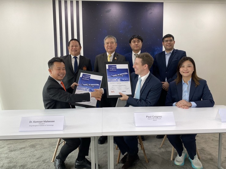 สถาบันเทคโนโลยีพระจอมเกล้าเจ้าคุณทหารลาดกระบัง (สจล.) สร้างความก้าวหน้าครั้งสำคัญบนเวทีอุตสาหกรรมการบินระดับโลก หลังร่วมลงนามบันทึกความเข้าใจ (Memorandum of Understanding: MoU) กับ Airbus ผู้นำระดับโลกด้านเทคโนโลยีอากาศยาน ภายในงาน Singapore Airshow 2026 เมื่อวันที่ 6 กุมภาพันธ์ พ.ศ.2569 เพื่อพัฒนาหลักสูตรเฉพาะทางและต่อยอดความร่วมมือด้านวิจัยสู่อากาศยานแห่งอนาคต