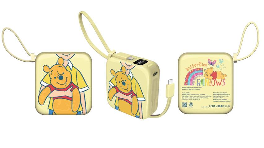 • สำหรับผู้ที่ชื่นชอบอุปกรณ์อิเล็กทรอนิกส์ พบกับพาวเวอร์แบงก์พกพา ชาร์จเร็ว ใช้งานสะดวก มาพร้อมดีไซน์พิเศษจาก Dissing ที่ได้รับแรงบันดาลใจจากวินนี่ เดอะ พูห์ ที่จะมาเพิ่มความน่ารักและขี้เล่นให้กับแกดเจตในชีวิตประจำวัน