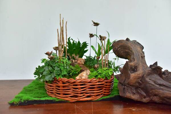 สำหรับการจัดทำ “พานรับน้ำลดโลกร้อน” ได้เลือกใช้พรรณไม้ตามความเหมาะสมของภาชนะ จัดวางระดับสูงต่ำด้วยดิน มอส เปลือกไม้ และก้อนหิน เพื่อจำลองทัศนียภาพทางธรรมชาติ แล้วจึงนำ “ปุ๋ยสวยงาม” ที่ปั้นไว้มาจัดวางเป็นองค์ประกอบสุดท้าย พานรับน้ำนี้ไม่เพียงแต่มีความงดงามสำหรับใช้ในพิธีรดน้ำดำหัวตามประเพณีไทย แต่ยังถูกออกแบบมาเพื่อให้สามารถนำไปใช้ประโยชน์ต่อได้ทันทีหลังจบเทศกาล