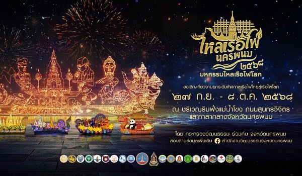 จังหวัด นครพนม ร่วมกับ กระทรวงวัฒนธรรม จัดงานมหกรรมไหลเรือไฟโลกและงานกาชาดจังหวัดนครพนม ประจำปี 256827 ก.ย. – 8 ต.ค. 2568 (12 วัน 12 คืน)ณ บริเวณศาลากลางจังหวัด และริมฝั่งโขง ถนนสุนทรวิจิตร อำเภอ